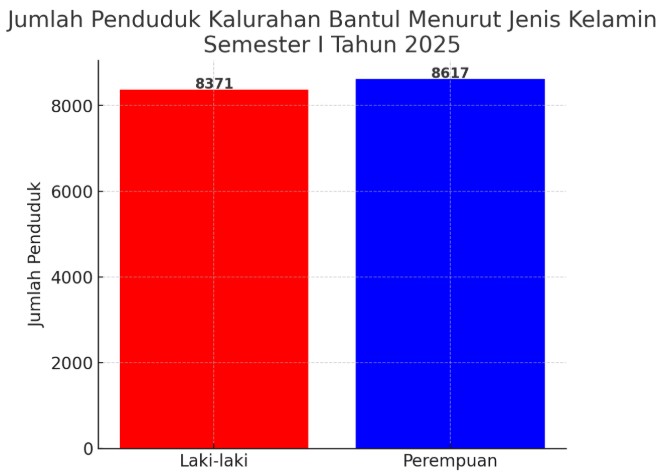 - Jumlah Penduduk Kalurahan Bantul Menurut Jenis Kelamin Semester I 2025